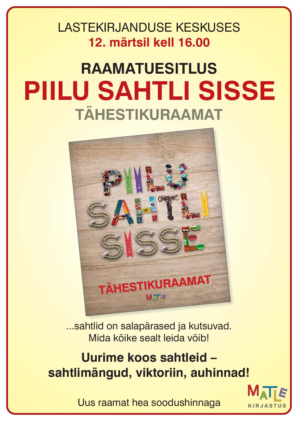 matle_reklaam_A4-1-page-001Teisipäeval, 12. märtsil kell 16 toimub Eesti Lastekirjanduse Keskuses Matle kirjastuse tähestikuraamatu „Piilu sahtli sisse” esitlus.