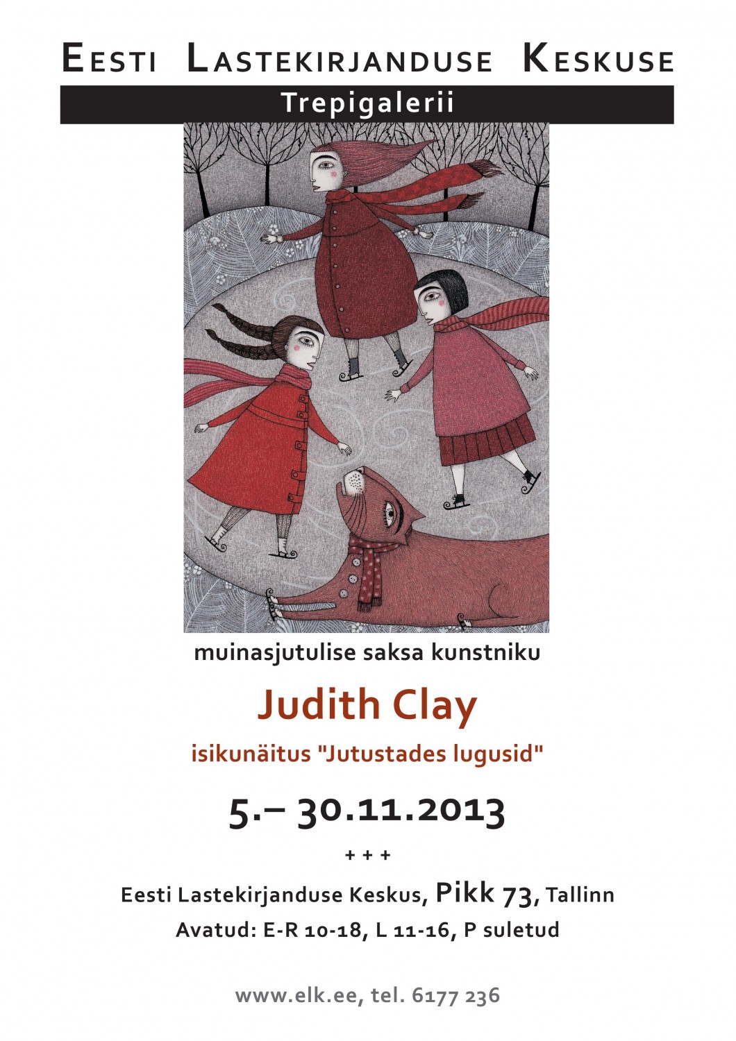 A2_ JC-page-001Teisipäeval, 5. novembril 2013 kell 15 avatakse Eesti Lastekirjanduse Keskuses saksa kunstniku Judith Clay isikunäitus „Jutustades lugusid”.