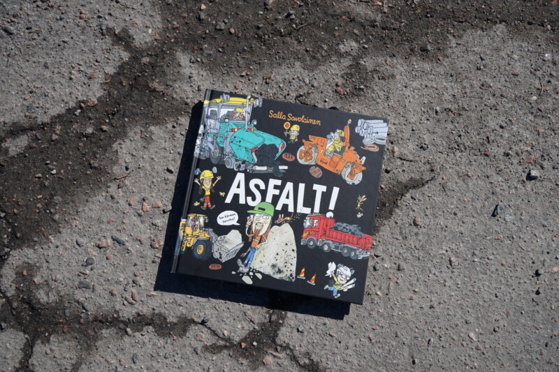 Kevad on käes ja sulanud lume alt tulevad välja suuremad ja väiksemad augud ja lõhed. Kogu aeg peab nüüd tänaval kõndides hirmus tähelepanelik olema, et jalg või autoratas mõnesse sellisesse teedefekti ära ei eksiks. Veel hullem lugu, kui juhtud jalg- või tõukerattal kulgedes kevadise sõiduuljusega mõnda sellisesse sisse põrutama. Siis, tundub mulle, on kokkupuude maapinnaga lausa vältimatu. Õnneks pole aga aukudel-augukestel pikemat pidu. Kaugel pole aeg, mil tänavatele ja teedele vuravad igasugu uhked tee-ehitusmasinad, kes aukudele säru teevad, ning õhus hõljub mõnusat asfaldilõhna. Kas sa aga tead, mis on asfalt, kuidas ja millest seda valmistatakse ning kuidas see tänavatele saab? Kui mitte, siis on just nüüd parim aeg kätte võtta Soome autori Salla Savolaise rohke pildimaterjaliga aimeraamat „Asfalt!“, mis pakub põhjalikku ülevaadet kõigest asfaldiga seonduvast.