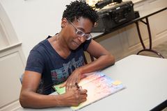 Mul polegi tegelikult ühtki korralikku sahtlit, kui ma oma töötoas ringi vaatan. Siin on mõned kapid, kuhu rändavad tehtud tööd ehk valmis raamatud ja siin on laud, kus on poolikud tööd. Neid poolikuid töid aga ei paista pealiskaudsel vaatamisel ka kuskilt, kuna nad on tavaliselt arvutis peidus. Ma joonistan nimelt kõik oma pildid otse arvutisse, joonistusekraani ja digipliiatsi abil. Alustan tööd arvutis alates kavandamisest ja lõpetan tükikotta saatmisega.